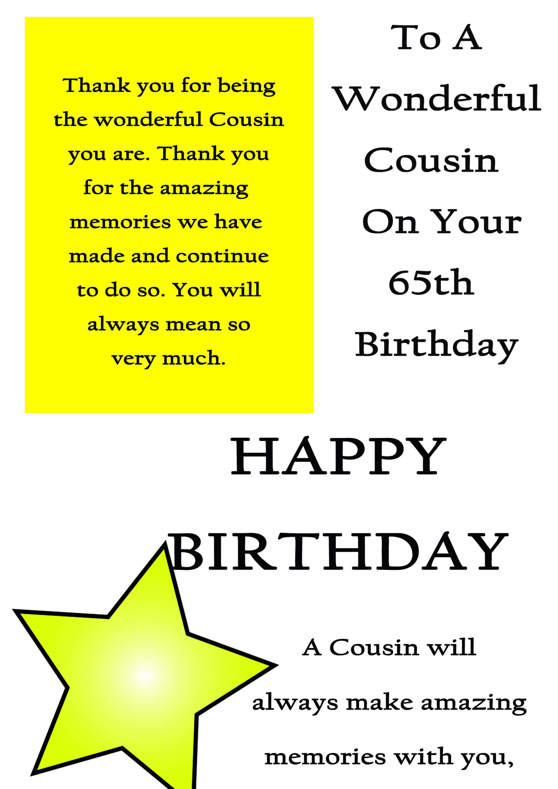 Cousin 65th Birthday Card
