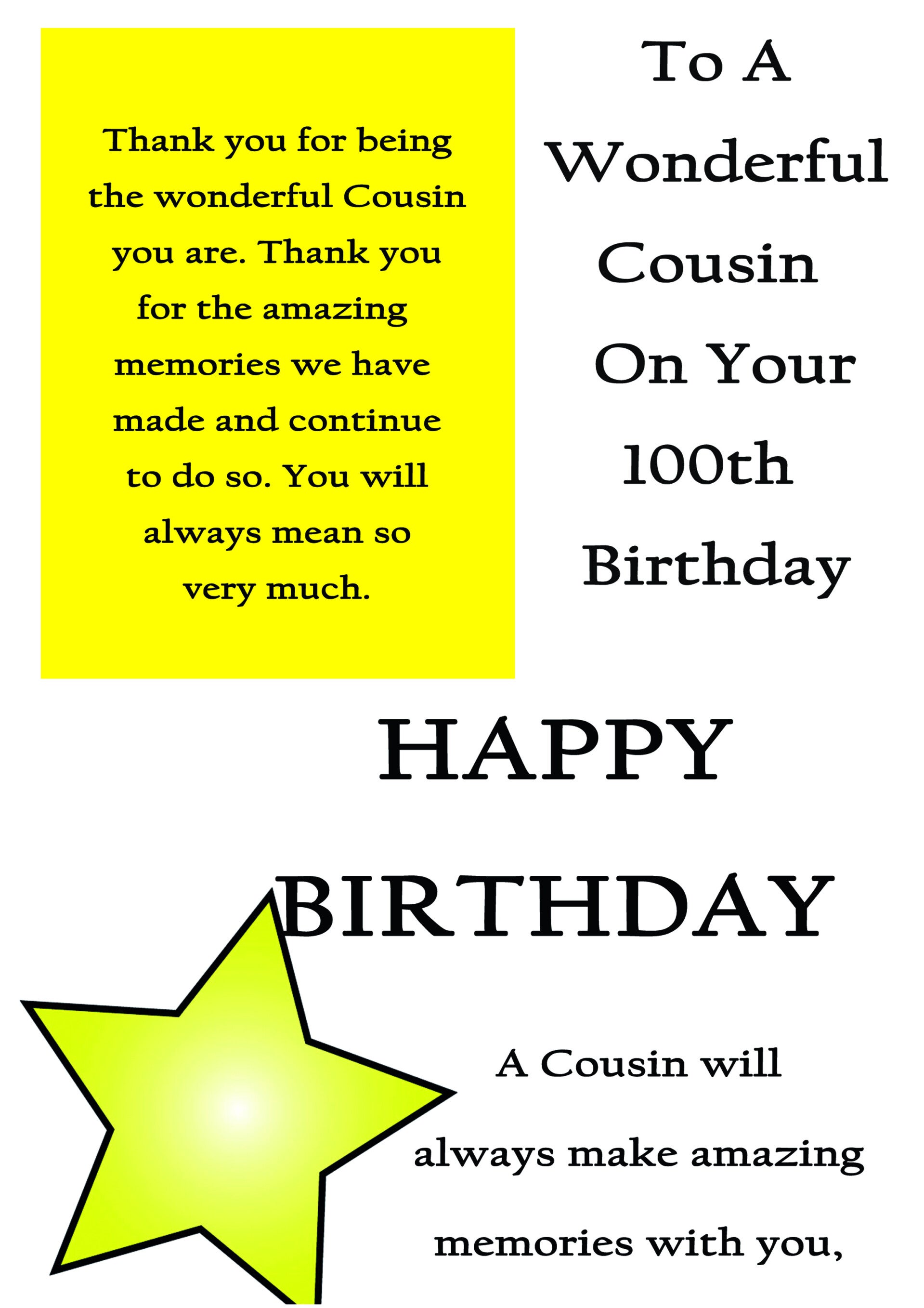 Cousin 100th Birthday Card