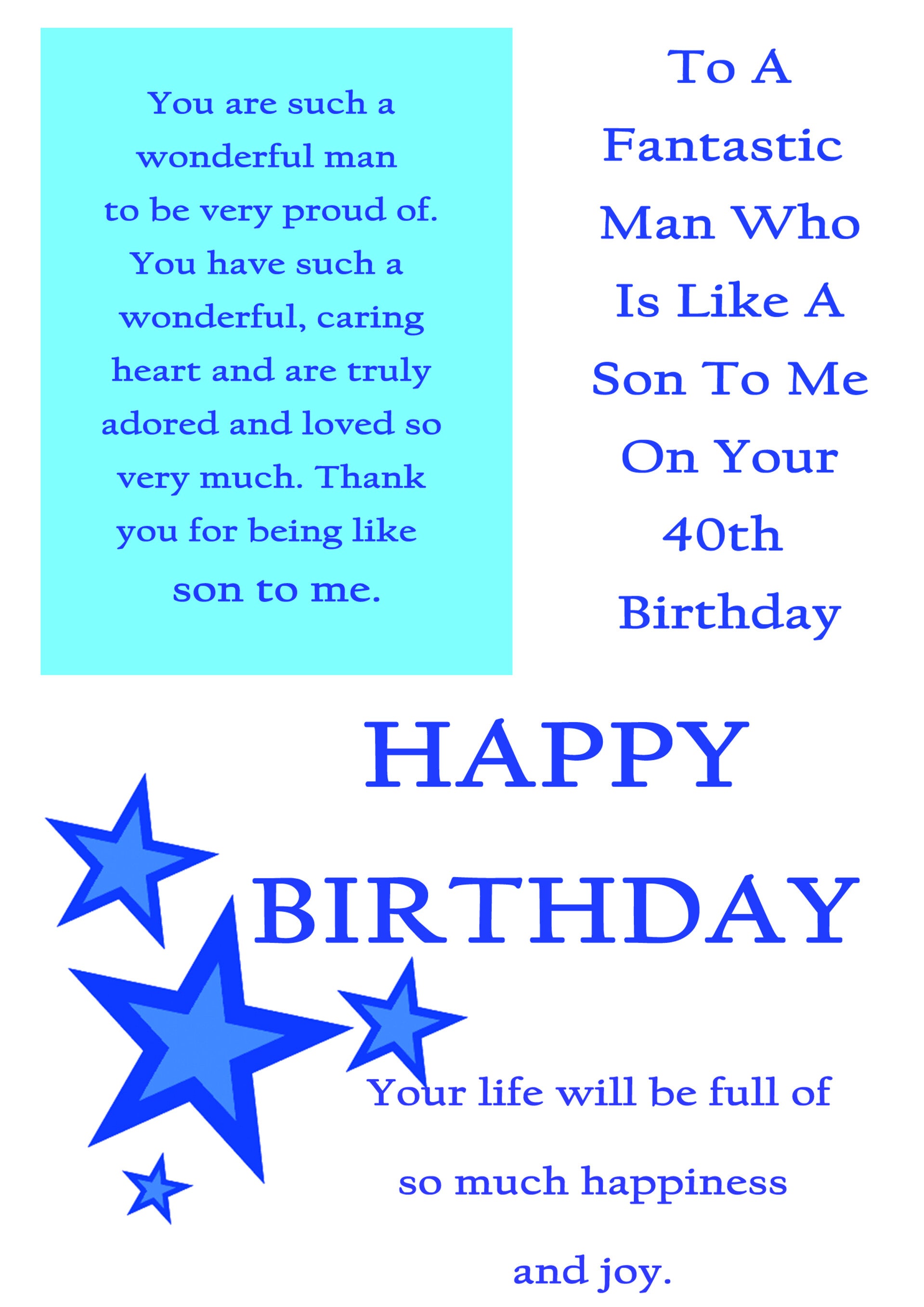 Like a Son 40th Birthday Card