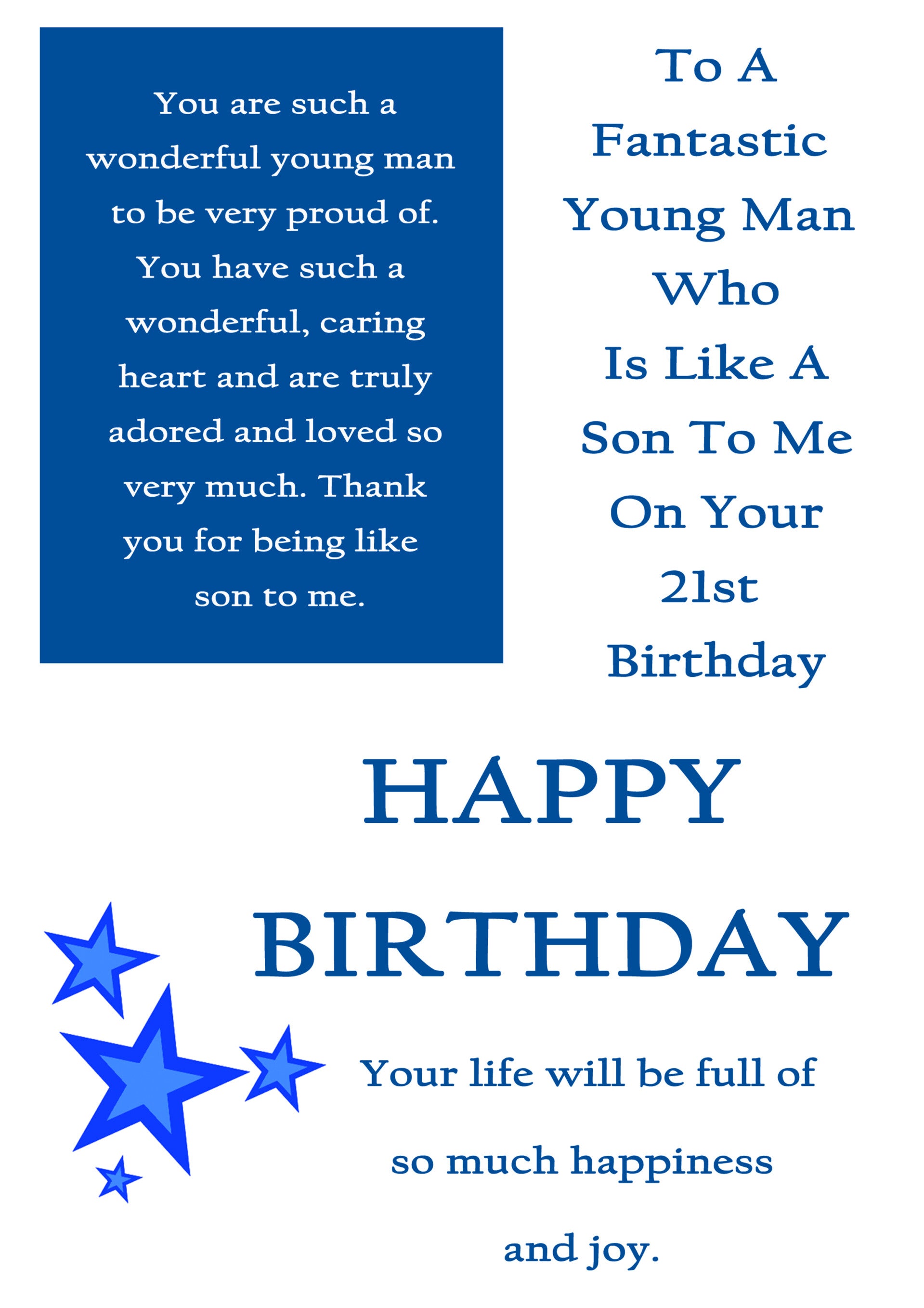 Like a Son 21st Birthday Card