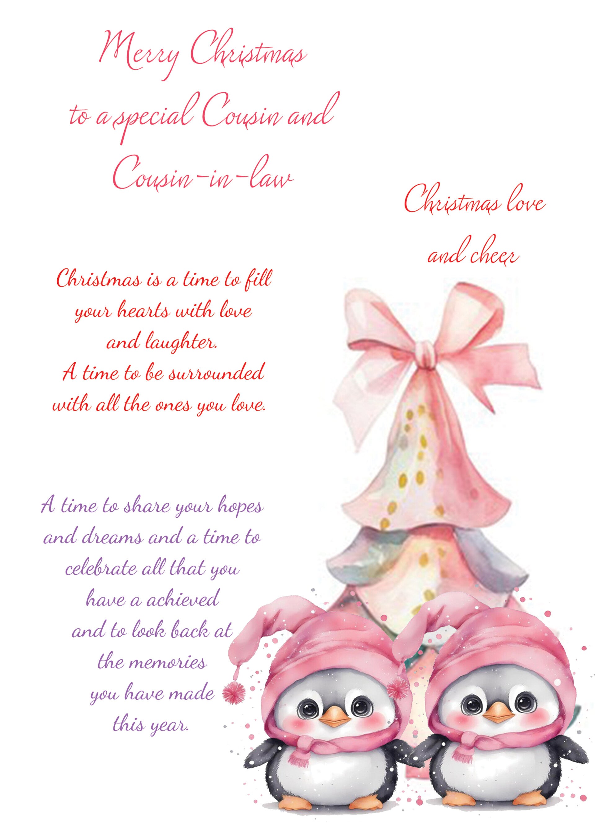Cousin and Cousin in law Christmas Card (female and female)